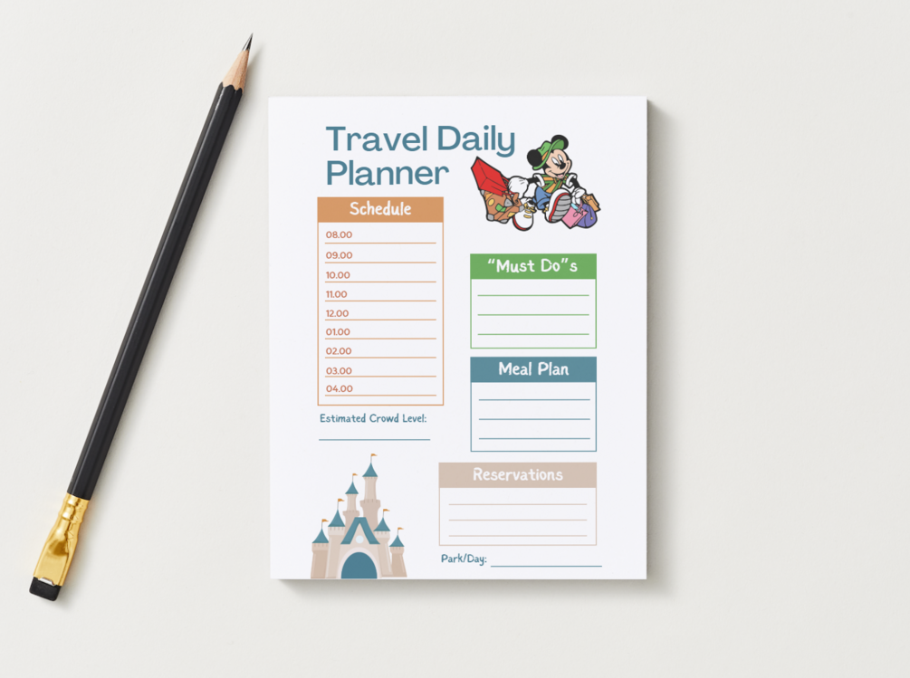 Disney Park Day Itinerary Template – Printable & Fillable Planner for Families